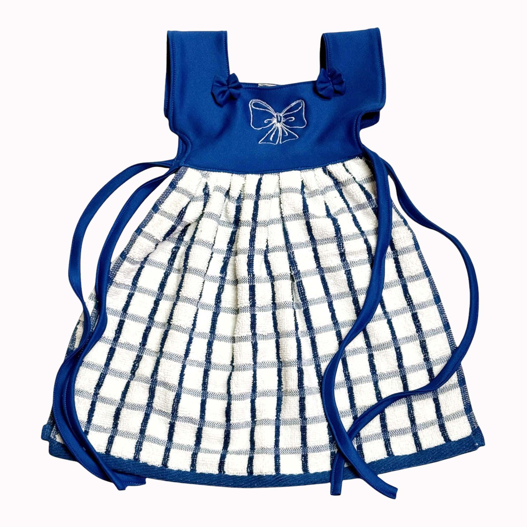 Add a charming touch to your kitchen with this delightful dress-style hanging towel. Featuring a classic red, green, printed calico Cotton fabric, white checkered pattern on the skirt portion and a solid red bodice adorned with a sweet embroidered bow detail, this decorative towel brings both style and functionality to your kitchen. The convenient dress design includes side ties that allow you to securely hang it from oven handles, cabinet knobs, or towel bars. The absorbent fabric makes it perfect for quick hand-drying while adding a nostalgic, country kitchen aesthetic to your space. The thoughtful design prevents the towel from slipping off handles while in use. This decorative kitchen accessory combines practicality with vintage-inspired charm, making it an ideal addition to any kitchen decor scheme or a lovely housewarming gift. The durable construction ensures it maintains its shape and functionality through regular use, while the classic color combination coordinates beautifully with various kitchen styles.
